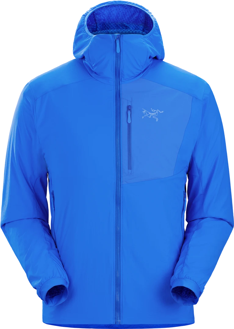 This new version of the popular Proton FL Hoody has been updated with an insulated hood and is an air permeable insulated softshell jacket from Arc’teryx designed for summer alpine and rock climbing, hiking, and running. You will end up using this for many other activities, and it will likely become one of your favorite pieces to wear around every day because it is so comfortable to have on. Active insulation layers like these are designed to maximize breathability in cooler conditions to keep you comfortable though a broad range of temperatures and activity levels. This jacket represents the 3-way intersection of something like an ultralight softshell jacket, a lightweight synthethic mid-layer, and a superlight synthetic puffy jacket all in one.