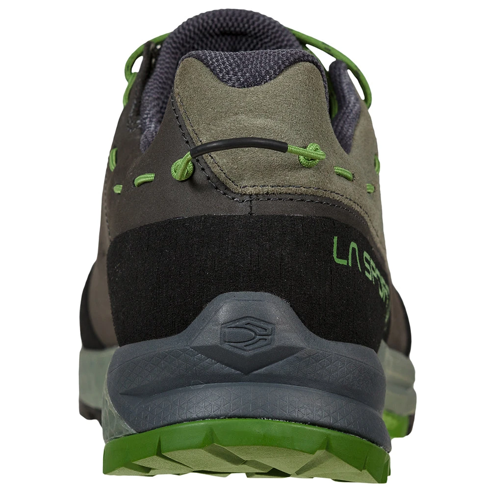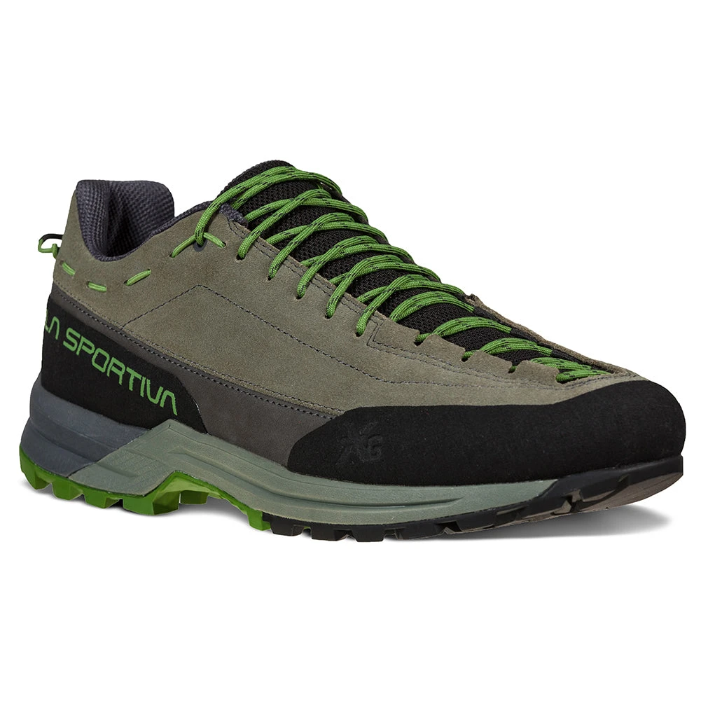 This new long-awaited TX Guide Leather approach and climb shoe will fast become known as La Sportiva’s best shoe in the category, with increased durability, stability, and climbability over and above the prior synthetic version of this shoe. Footwear with leather uppers like these will break-in and conform better to the shape of your feet, allowing for a more precise fit for climbing while increasing their longevity. Asymmetrical to-the-toe lacing provides much needed toe room for the hike in and out, while allowing for a much more precise, close-fitting, and stable fit for performance climbing when cinched tight for use on the rock. An anti-torsional shank and rock guard combined with sticky Vibram® Mega-Grip™ rubber in the forefoot provides superior edging capability. Toe caps and heel counters increase protection from abrasions, and heel loops allow these to be easily and securely clipped off to your harness when donning rock shoes becomes necessary for the most technical rock climbing portions of the route.