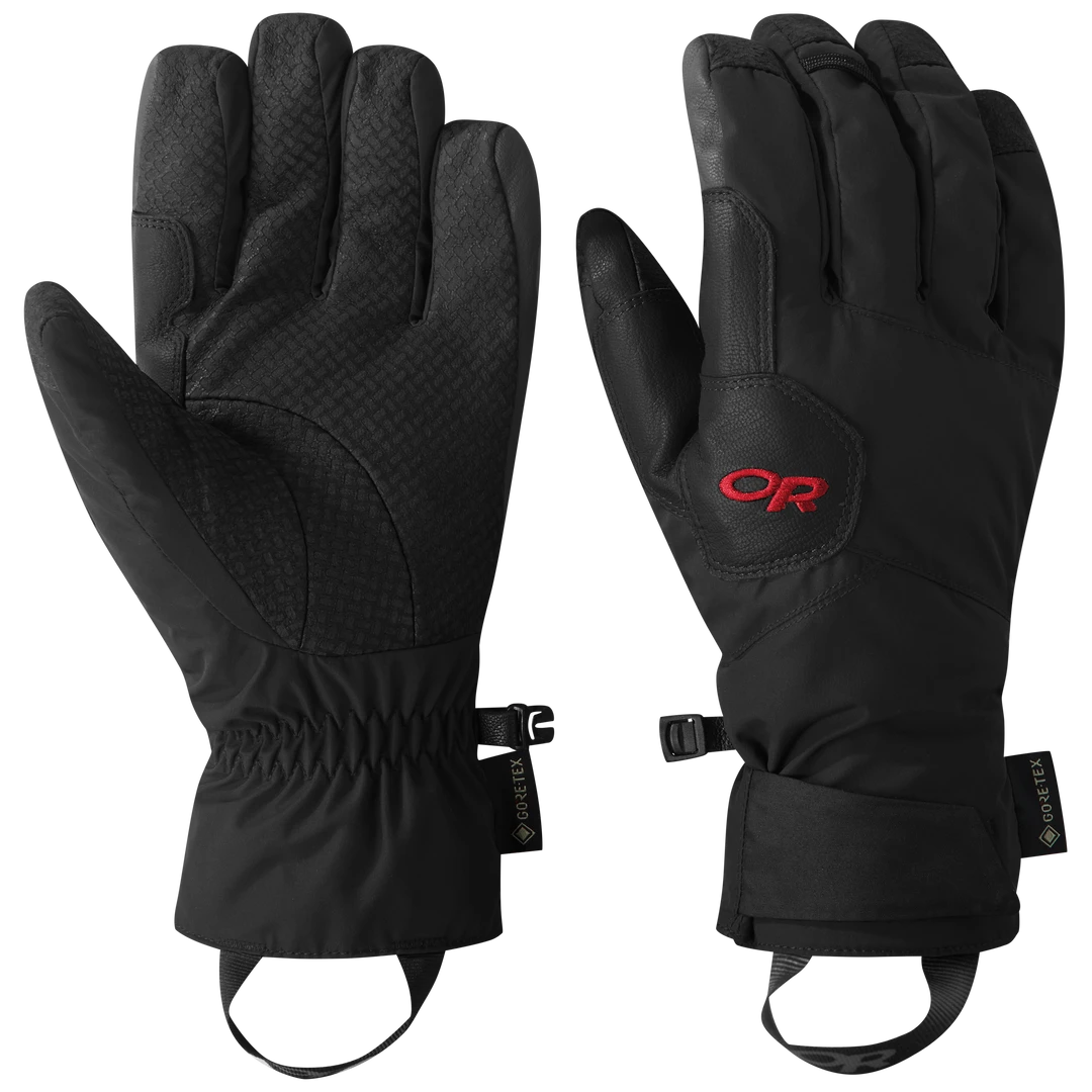 These award winning gloves from Outdoor Research are designed to give you the best possible combination of dexterity, durability, and warmth when handling freezing cold objects like tools, ropes, ice, and rock. Multiple flexible compression-resistant customized PrimaLoft® Aerogel Insulation panels are incorporated over the fingers and palm to help reduce heat loss while maintaining grip and dexterity. Aerogel insulation retains about 96% of its original warmth no matter how hard you grip. Other features include an industry best waterproof/breathable GORE-TEX® lining, Primaloft® Gold insulation on the back of the hand, and a Pittards® Oiltac Goat Leather palm.