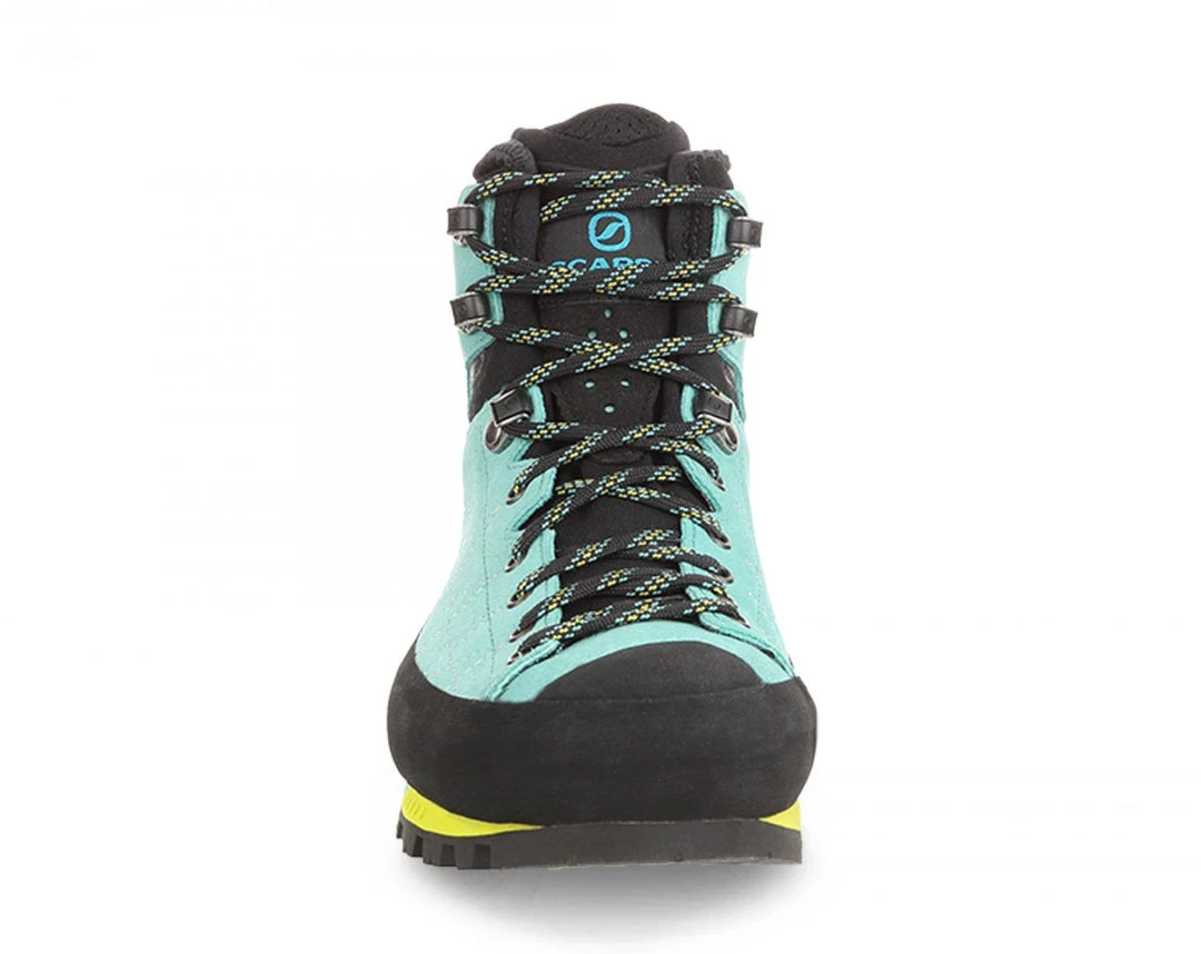 Scarpa’s lightest duty women’s specific 3-season mountaineering boot. From day hiking, to backpacking, scrambling, and mid-summer climbs of Mt Rainier…this boot does it all! 1.8mm Suede leather upper for durability combined with a Gore-tex® performance comfort lining for waterproof breathable performance. Extended rubber rand for increased durability. Sock-Fit™ construction with lacing to-the-toe for a precise performance climbing fit.